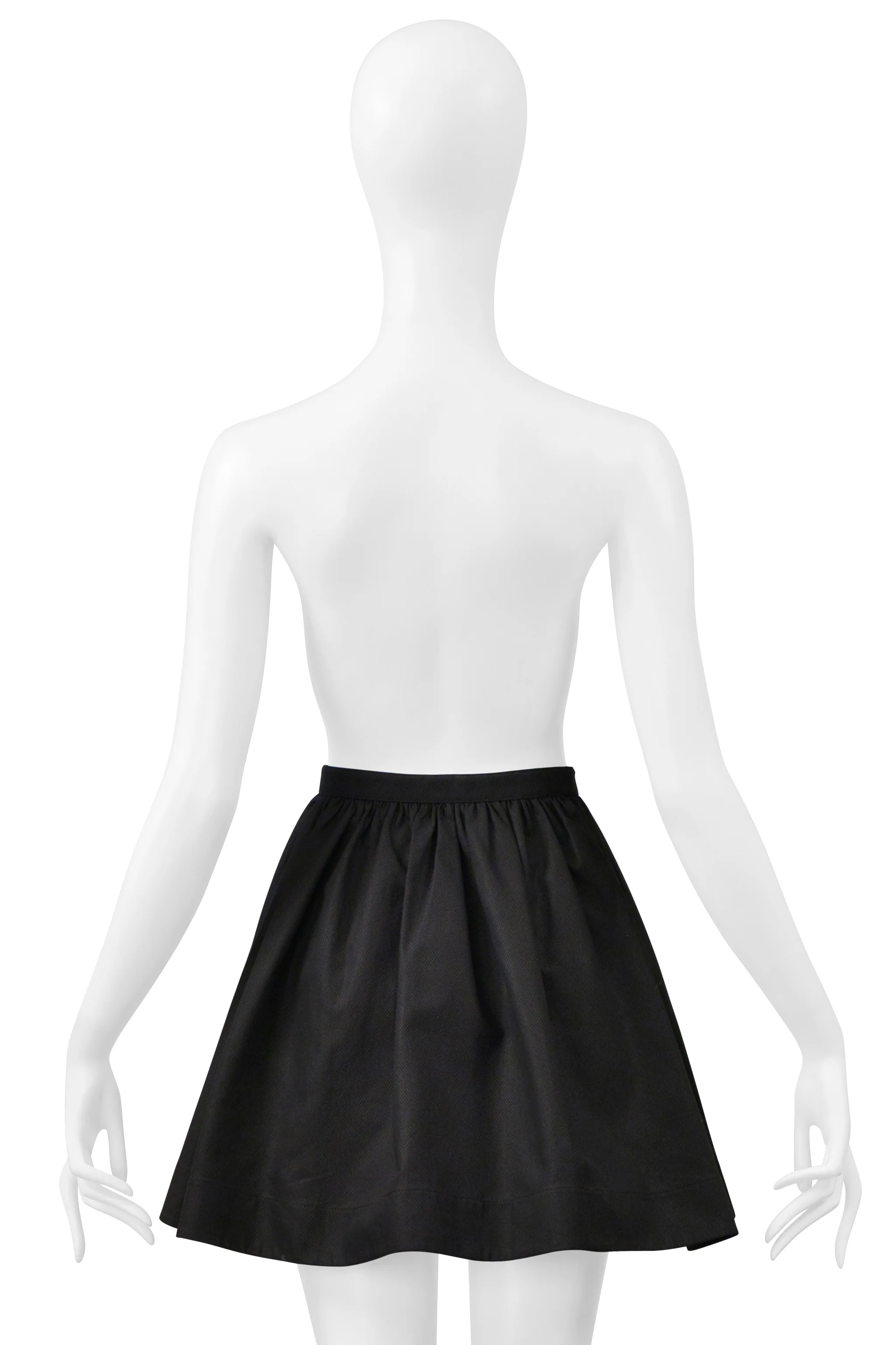 Resurrection Vintage is excited to offer a vintage Azzedine Alaia black cotton super mini skirt featuring a single snap closure, a gathered circular skirt, and a flirty asymmetrical mini length.Â