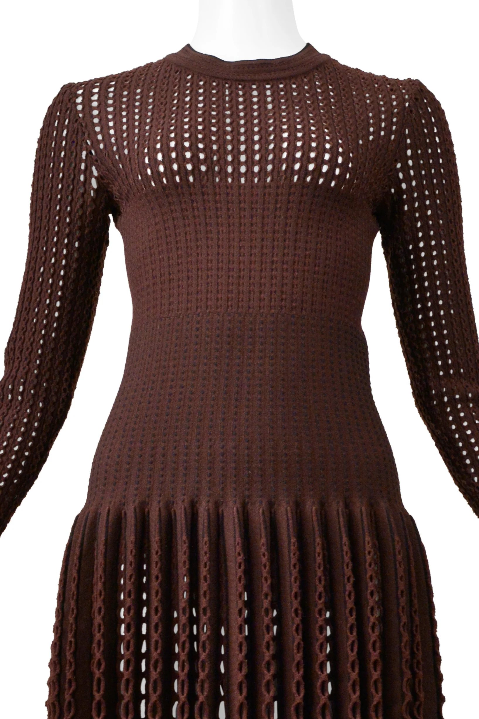 ALAIA BROWN LASER CUT FANCY KNIT DRESS