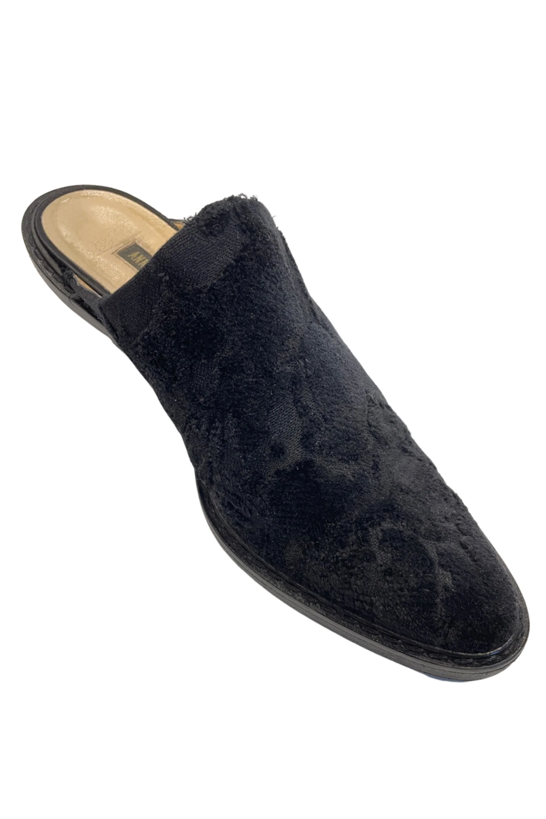 ANN DEMEULEMEESTER BLACK VELVET BURNOUT MULE SHOES
