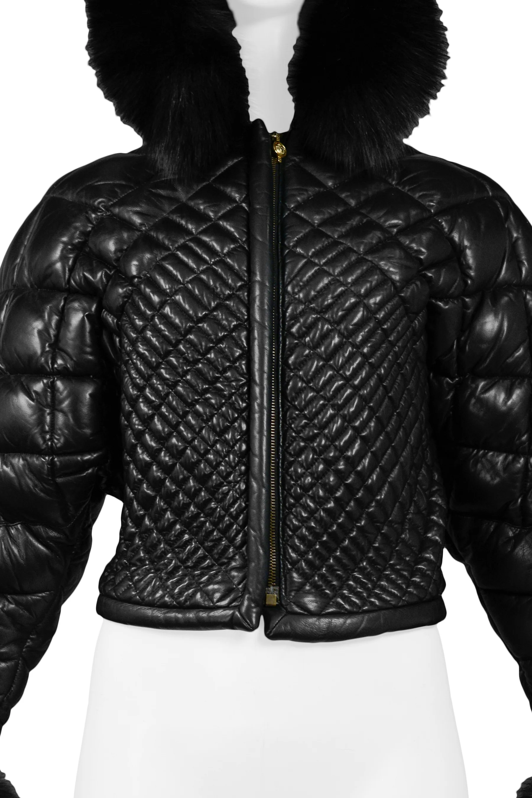 VERSACE BLACK LEATHER & FUR PUFFER JACKET 1992