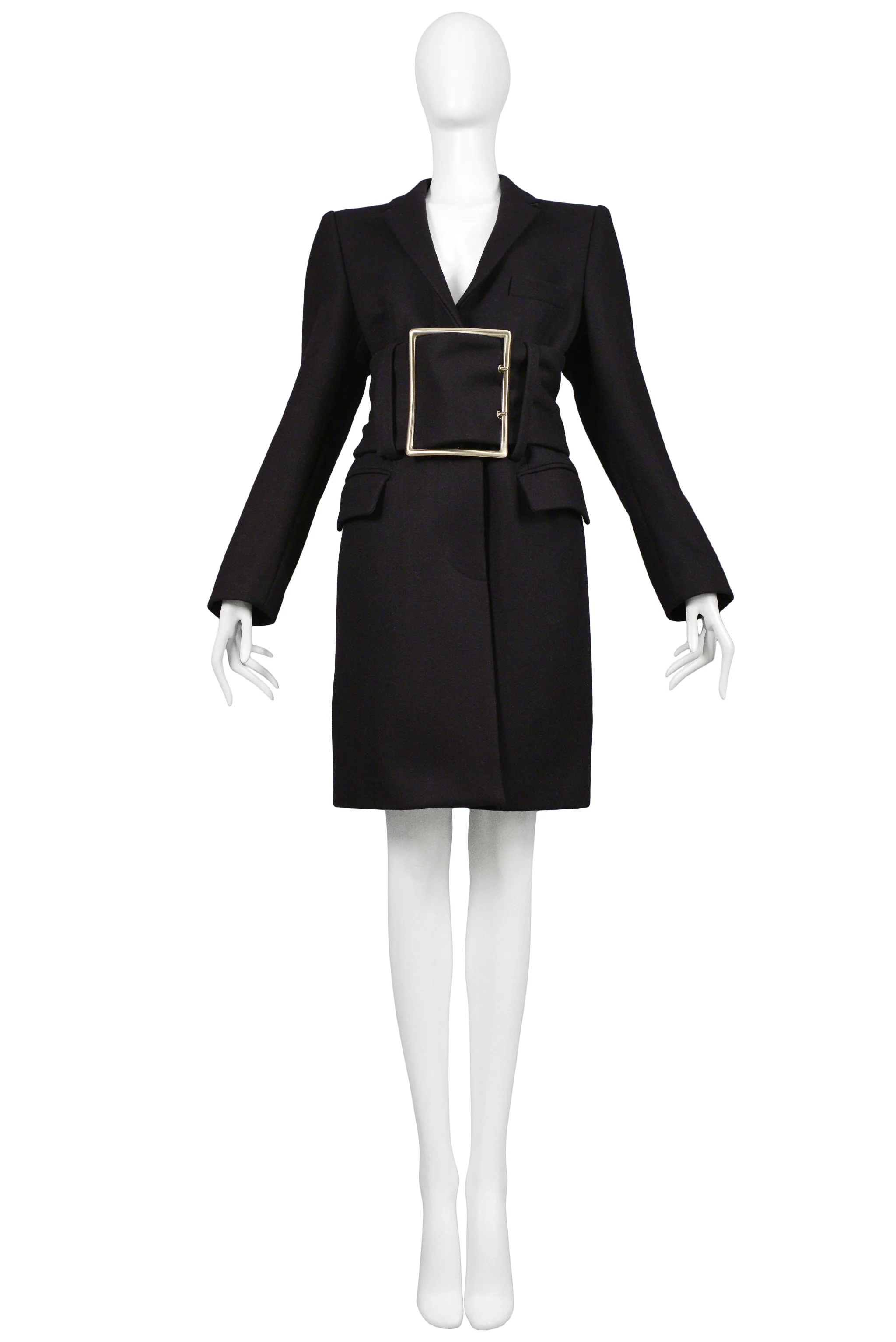 MAISON MARTIN MARGIELA NAVY WOOL GIANT BUCKLE COAT 1996