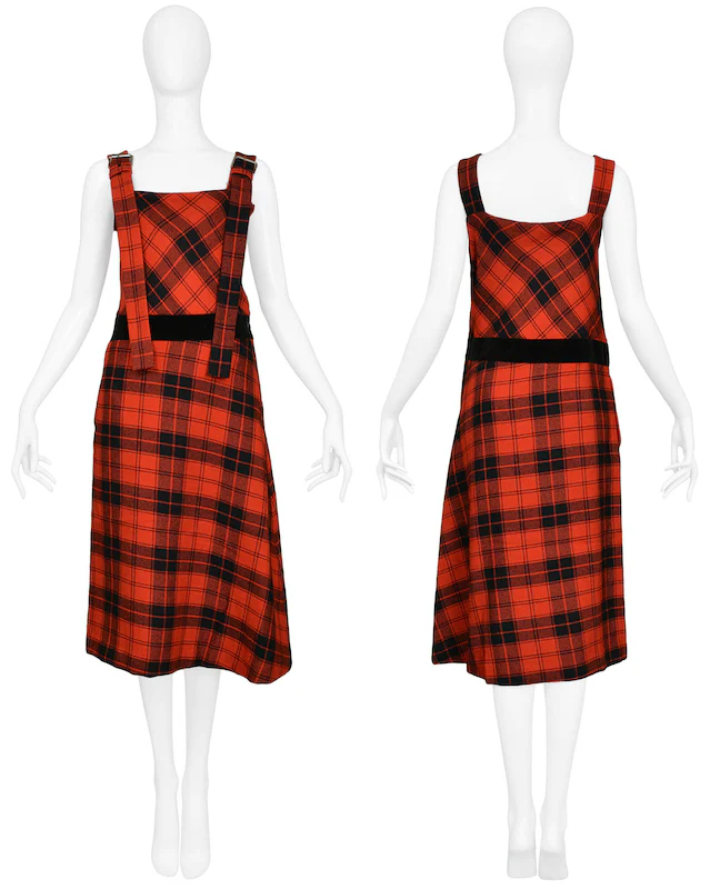 YOHJI YAMAMOTO RED PLAID JUMPER DRESS 2003